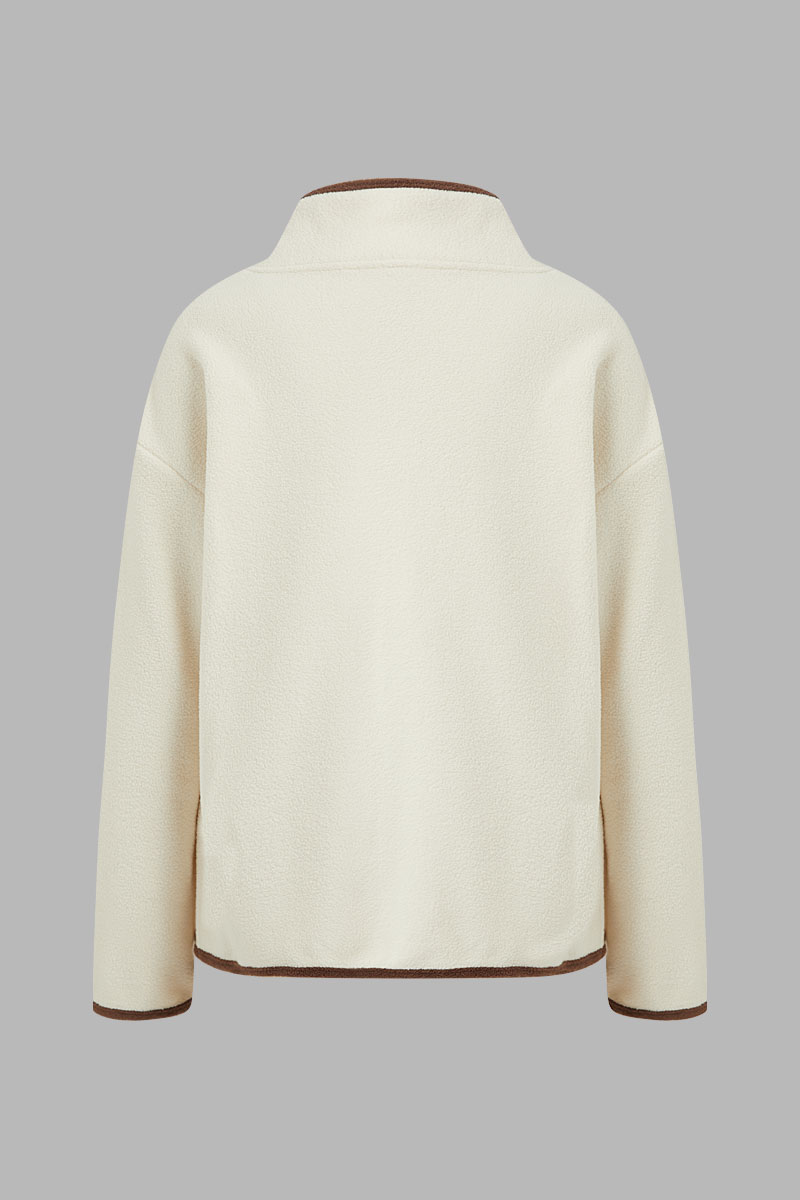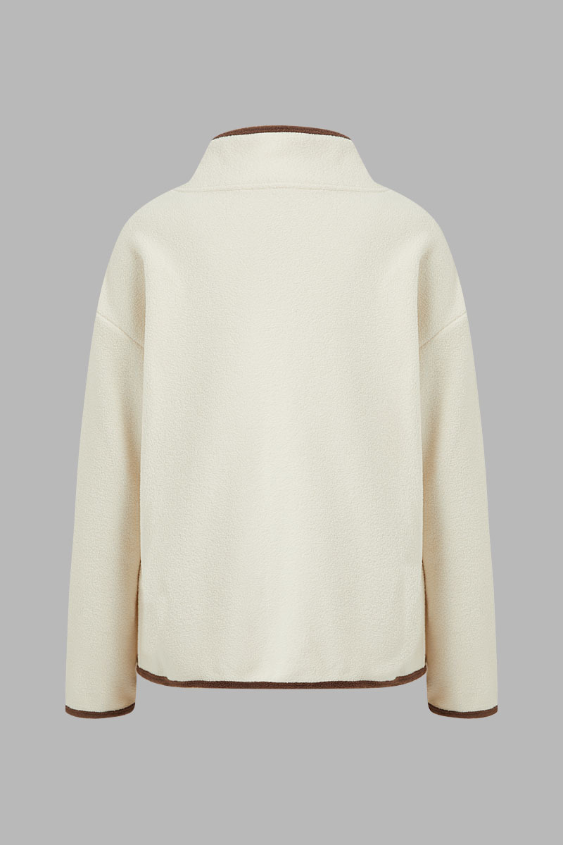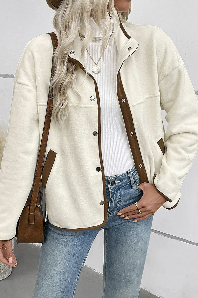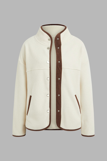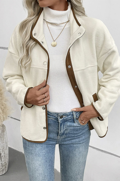 Details:  Contrast binding involves the use of along the edges or seams, creating a visually striking outline; Button design makes it more fun and vertical; Real pocket for practicality; Stitch as the specific sewing technique creates decorative elements that contribute to the overall design of garments