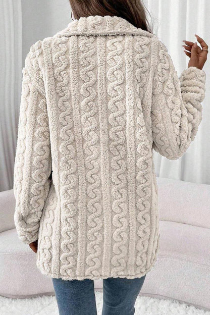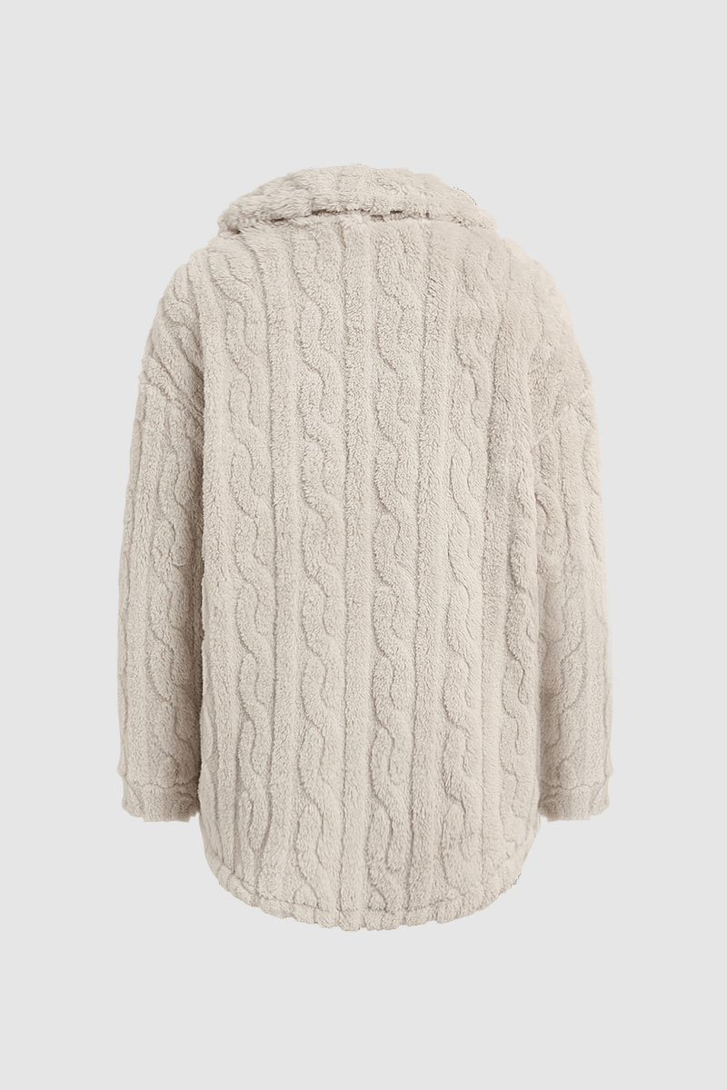 Faux Fur Pocket Front Long Sleeve Coat