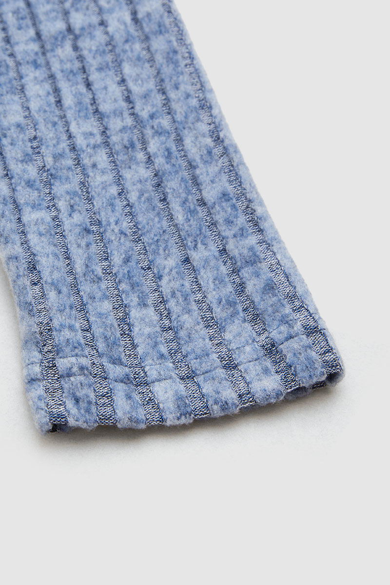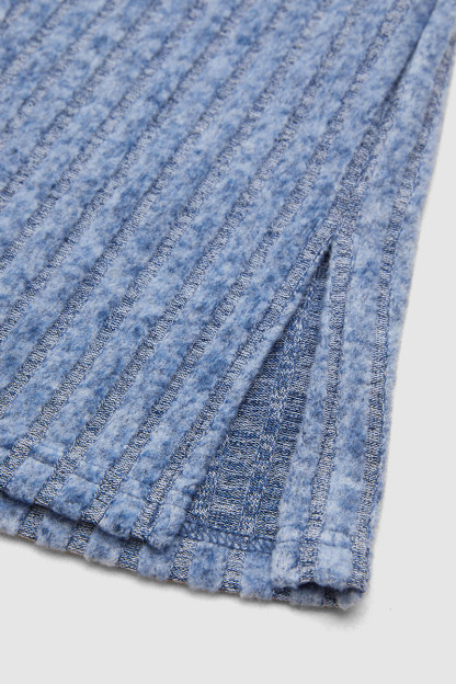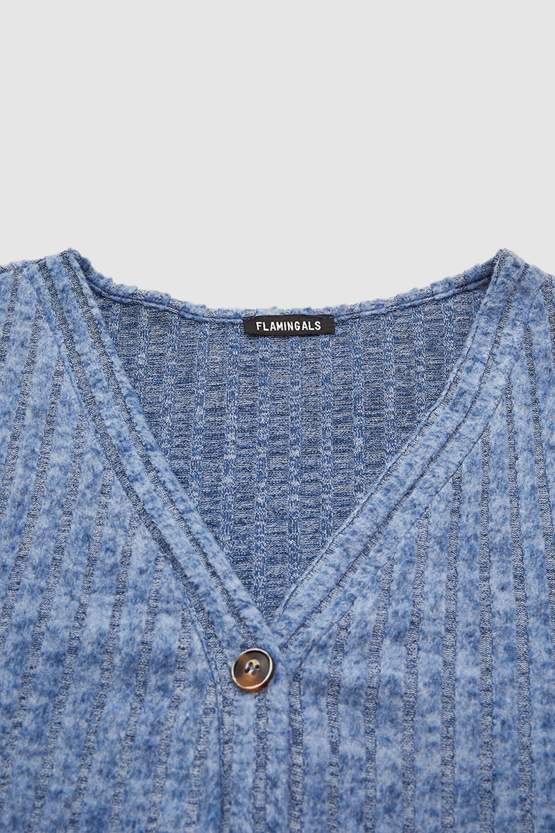 Details:  Split design features an intentionally parted or slit edge, adding a subtle yet modern touch to the overall design; Button design makes it more fun and vertical; Rib-Knit is characterized by its distinctive columns of stitches that alternate between knit and purl patterns, providing a snug fit, and an appealing ribbed appearance