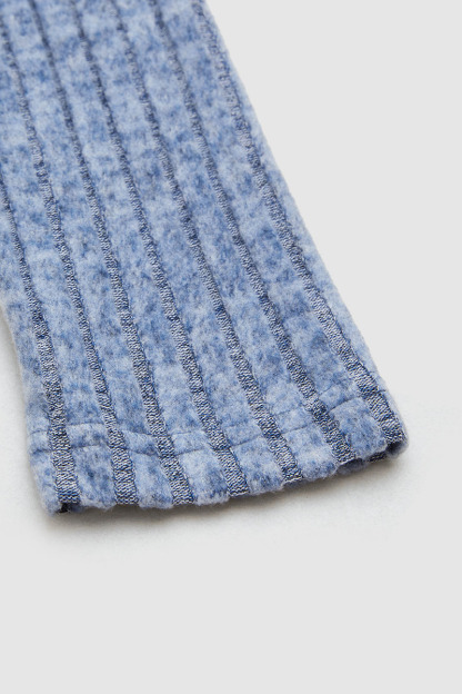 Material:  Rib-Knit is characterized by its distinctive columns of stitches that alternate between knit and purl patterns, providing a snug fit, and an appealing ribbed appearance