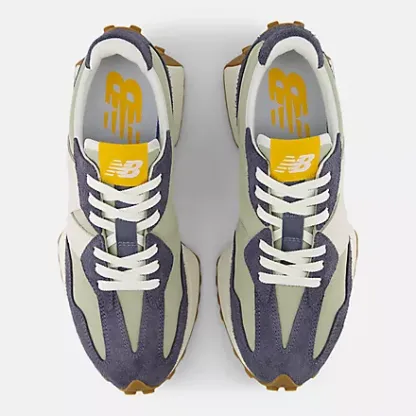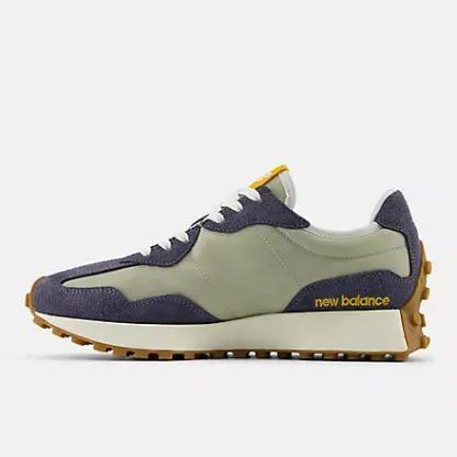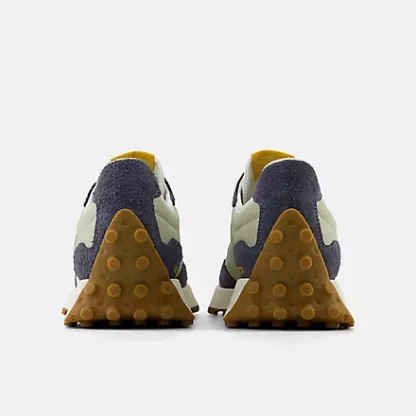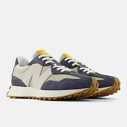 As recreational running grew in popularity in the 1970s, the benchmark for running shoes shifted from mere existence to performance. While the designs of the era would be considered simple by today's standards, this decade stands out as the moment when running shoes truly took off. The 327 sheds new light on the '70s as a time of innovation by boldly reshaping classic design elements with a distinctly contemporary perspective. With an angular reworking of the tried-and-true wedge silhouette, an oversized, asymmetrically applied "N" branding, and a trail-inspired, wraparound lugged outsole, the 327 offers nothing less than a complete reinvention of our running heritage.