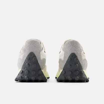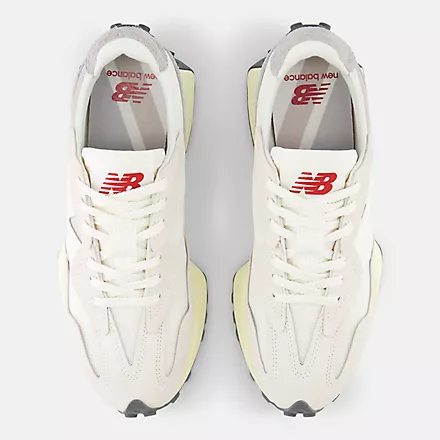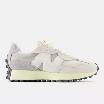 As recreational running grew in popularity in the 1970s, the benchmark for running shoes shifted from mere existence to performance. While the designs of the era would be considered simple by today's standards, this decade stands out as the moment when running shoes truly took off. The 327 sheds new light on the '70s as a time of innovation by boldly reshaping classic design elements with a distinctly contemporary perspective. With an angular reworking of the tried-and-true wedge silhouette, an oversized, asymmetrically applied "N" branding, and a trail-inspired, wraparound lugged outsole, the 327 offers nothing less than a complete reinvention of our running heritage.