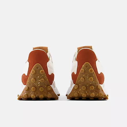 As recreational running grew in popularity in the 1970s, the benchmark for running shoes shifted from mere existence to performance. While the designs of the era would be considered simple by today's standards, this decade stands out as the moment when running shoes truly took off. The 327 sheds new light on the '70s as a time of innovation by boldly reshaping classic design elements with a distinctly contemporary perspective. With an angular reworking of the tried-and-true wedge silhouette, an oversized, asymmetrically applied "N" branding, and a trail-inspired, wraparound lugged outsole, the 327 offers nothing less than a complete reinvention of our running heritage.