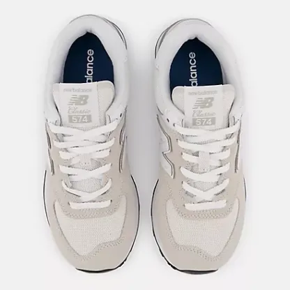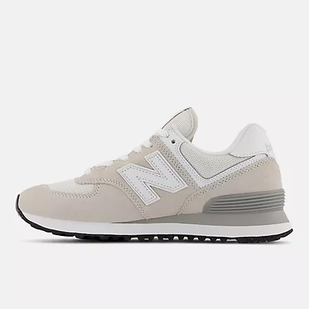 The 574 was designed to be a reliable shoe that could do many different things successfully. The 574's unique yet wearable set of qualities quickly made it a staple in wardrobes around the world. The 574+ is a contemporary and striking take on the classic 574 design. The addition of a two-piece stacked EVA midsole with a reduced ENCAP piece creates a sense of refined exaggeration. The midsole proportions are complemented by a wavy outsole, inspired by the original Trackster. Pigskin suede overlays and perforated and synthetic leather details offer a premium execution of the familiar 574 upper design.