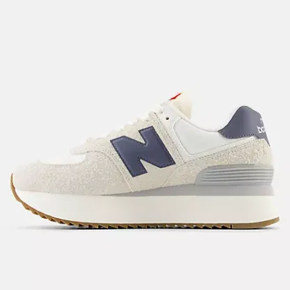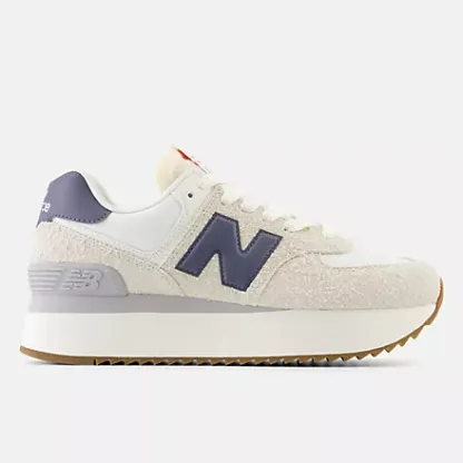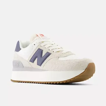 The 574 was designed to be a reliable shoe that could do many different things successfully. The 574's unique yet wearable set of qualities quickly made it a staple in wardrobes around the world. The 574+ is a contemporary and striking take on the classic 574 design. The addition of a two-piece stacked EVA midsole with a reduced ENCAP piece creates a sense of refined exaggeration. The midsole proportions are complemented by a wavy outsole, inspired by the original Trackster. Pigskin suede overlays and perforated and synthetic leather details offer a premium execution of the familiar 574 upper design.